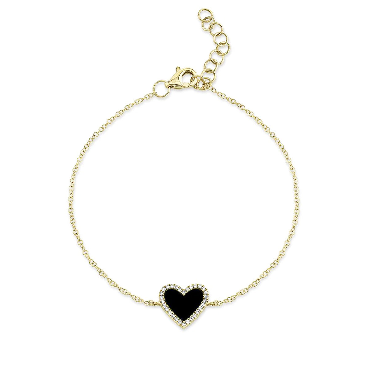 14k yellow gold bracelet by Shy Creation with small onyx heart & 0.09ct diamond halo by Shy Creation