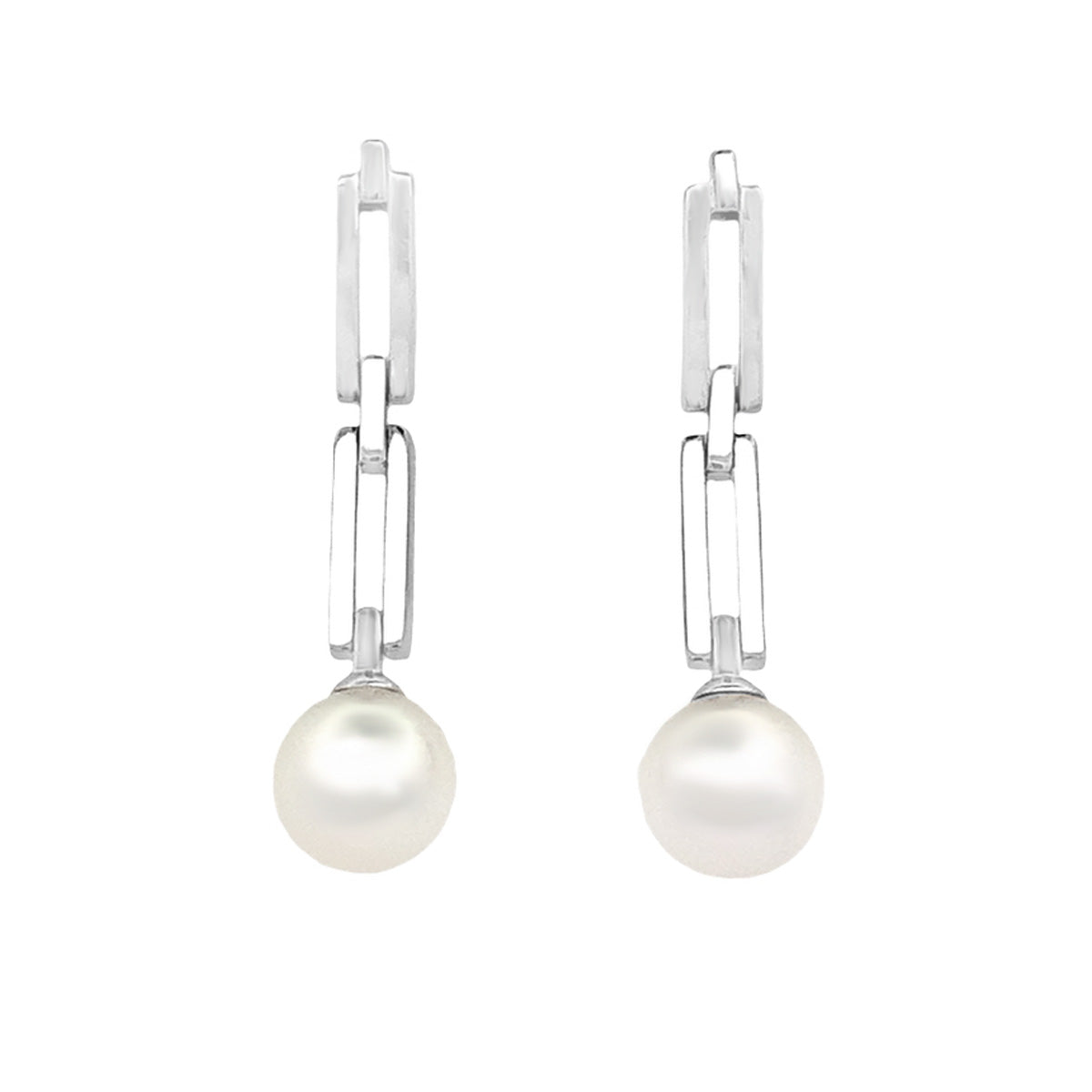 14kt white gold "Paperclip" style drop earrings with 7mm Akoya cultured pearl bottom