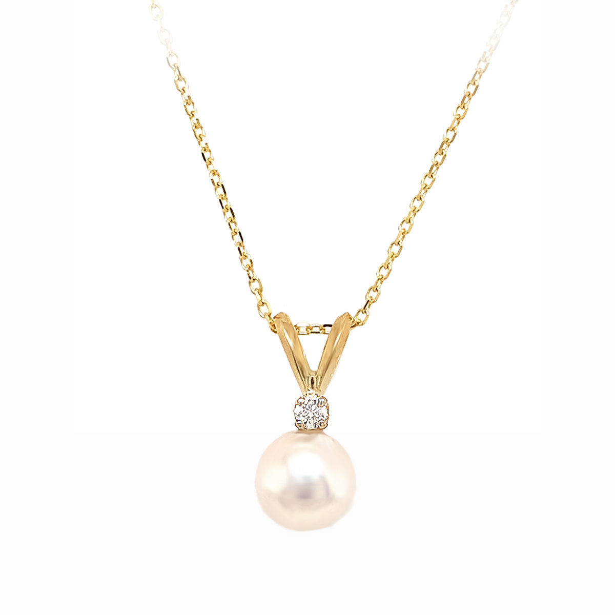 14k yellow gold 6.25mm Akoya cultured pearl pendant with .03ct diamond on a 16-18" adjustable cable chain