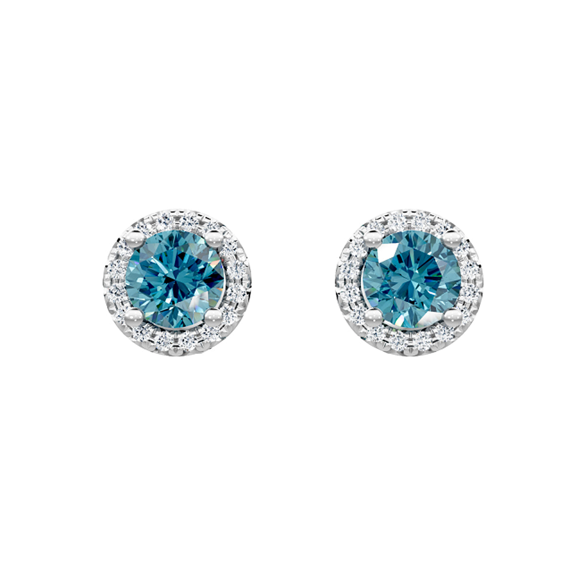 14kt white gold 5mm round blue topaz & 0.12ct diamond halo stud earrings. For the sky blue lover, or to commemorate a December birthday.