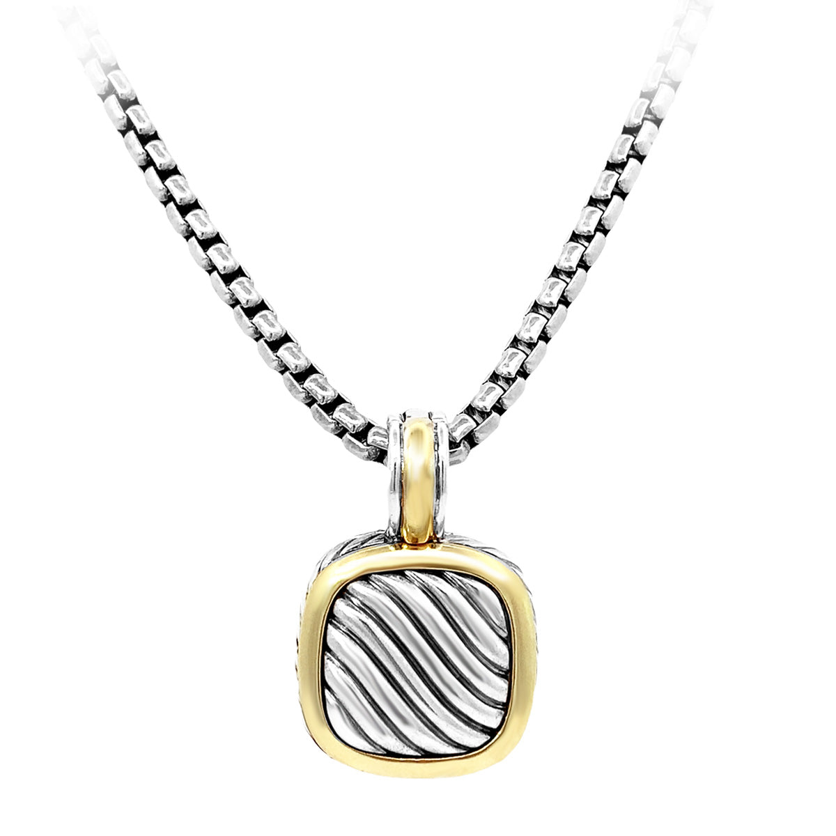 Sterling silver & 18kt yellow gold Vintage 16mm David Yurman cushion "Cable" enhancer pendant on an 18" 3.6mm David Yurman box chain