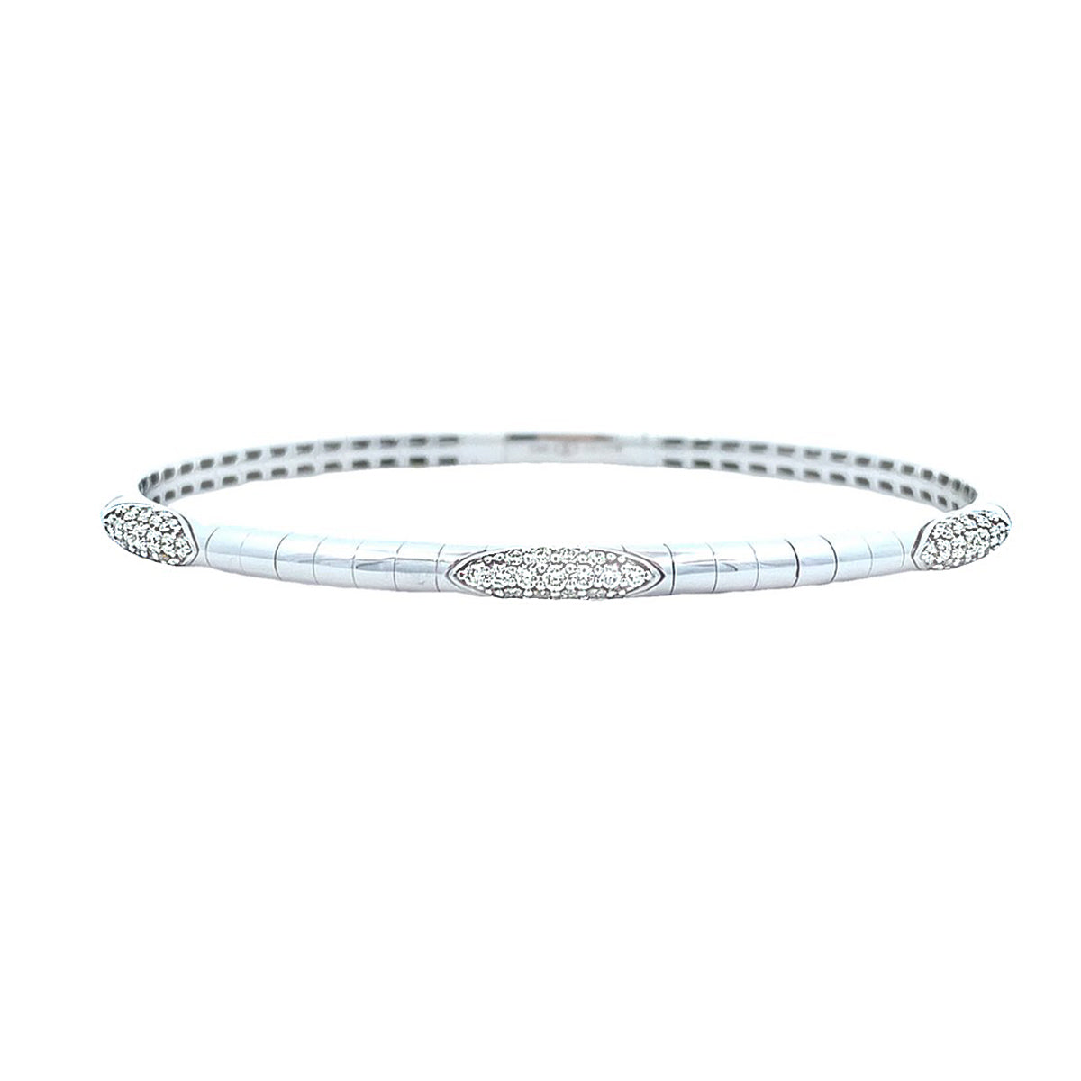 14k white gold narrow flex bracelet with 1/2ct pave diamond stations (titanium core for flexibility)