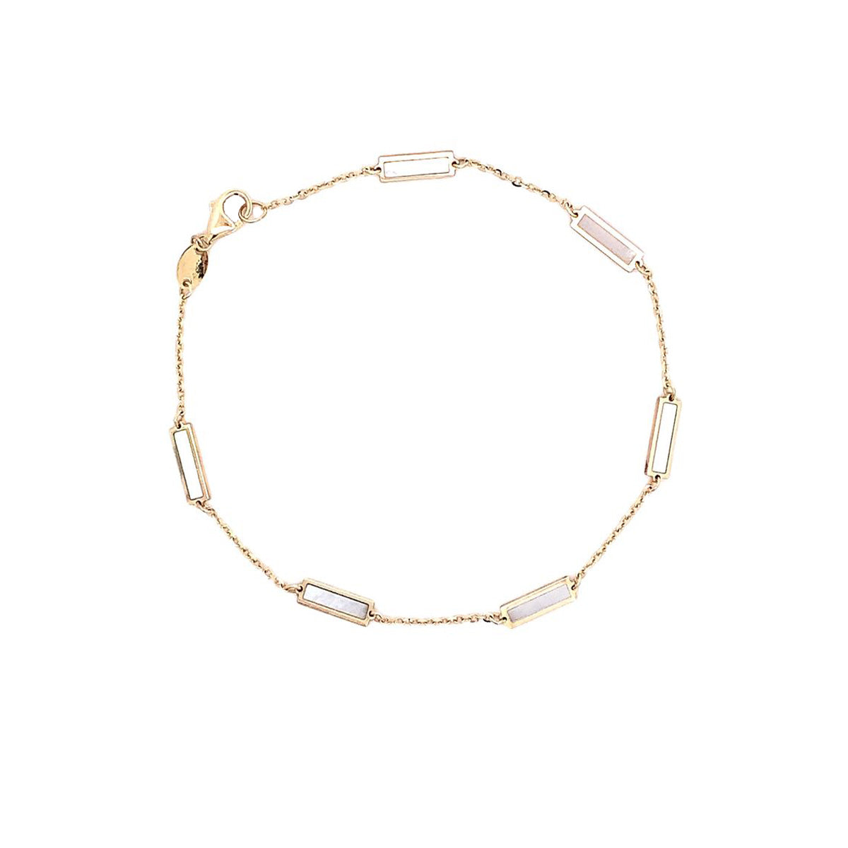 14k yellow gold bracelet with narrow inlaid mother-of-pearl bar stations by Frederic Sage
