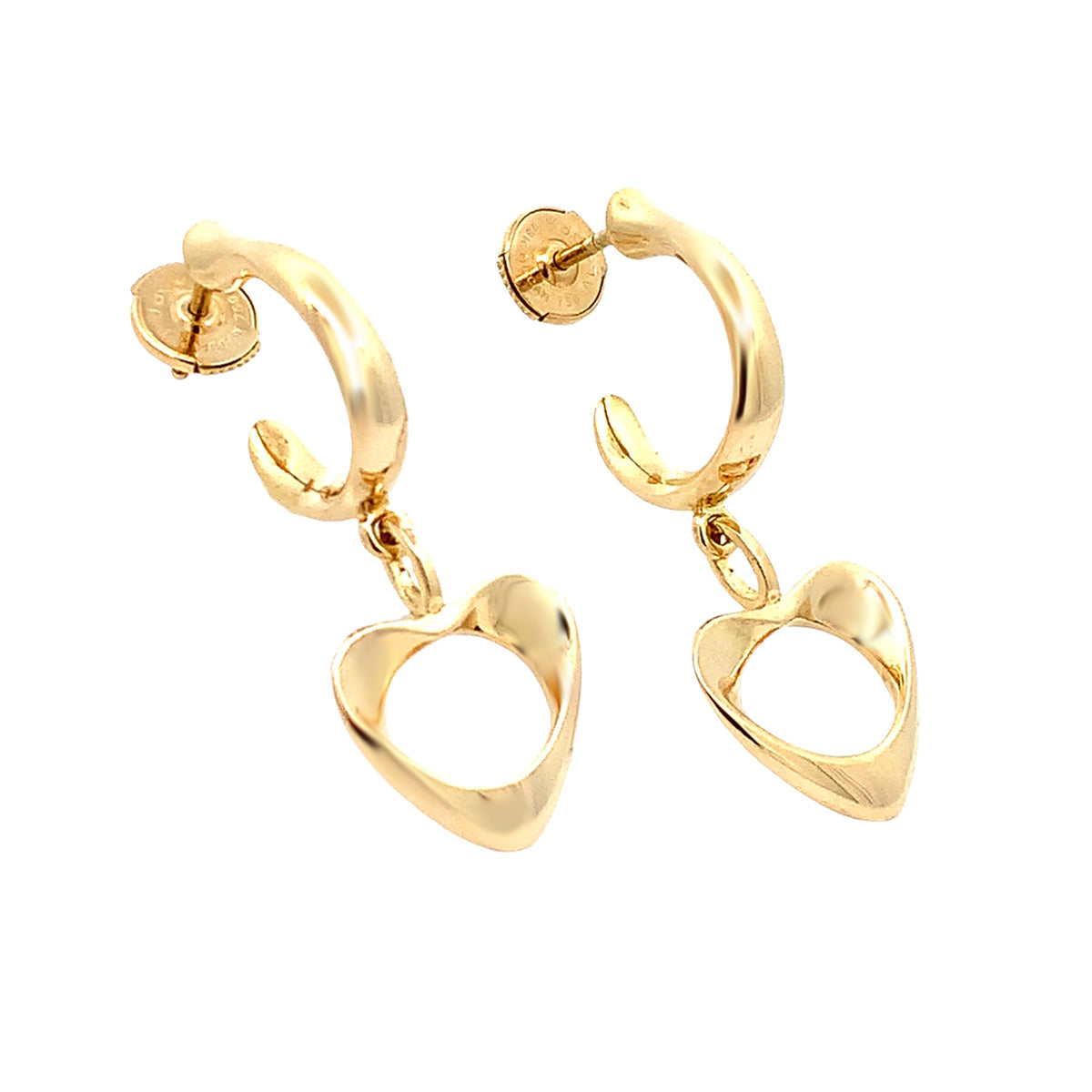 18kt yellow gold Vintage George Jensen (Denmark) hoop earrings with freeform heart drops
