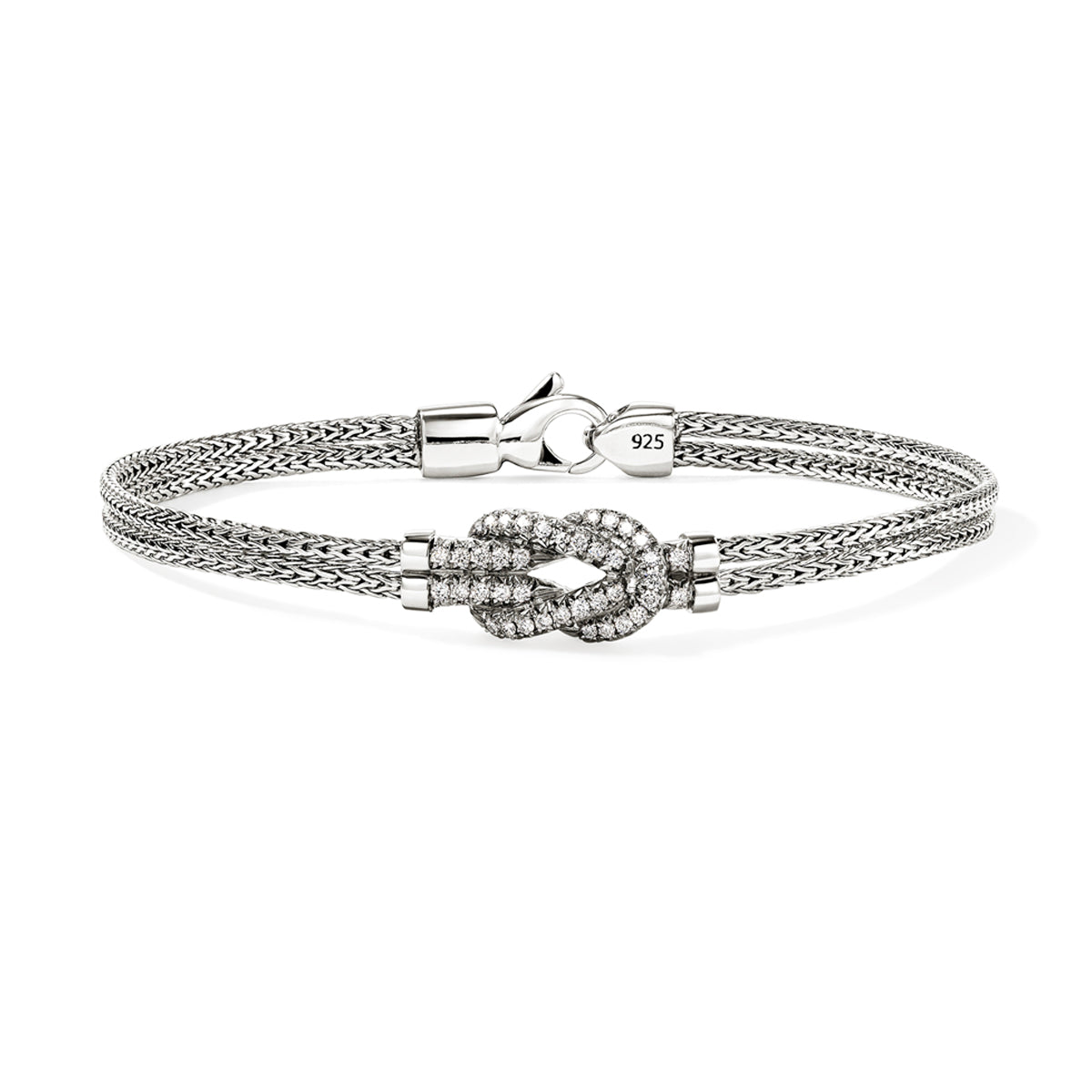 Sterling silver John Hardy narrow "Love Knot" Classic Chain bracelet with 0.30ct pave diamonds