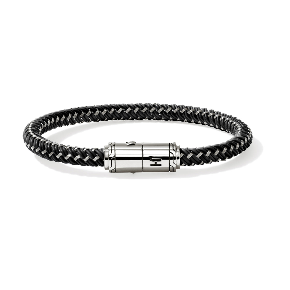 Sterling silver John Hardy men's 6mm woven silver & black leather bracelet