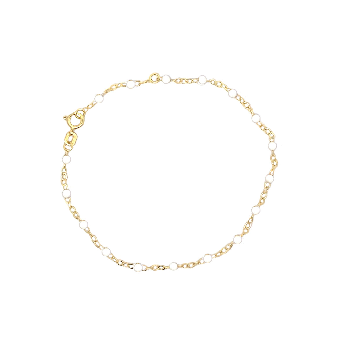 14k yellow gold 7.5" white enamel bead station "Piatto" bracelet