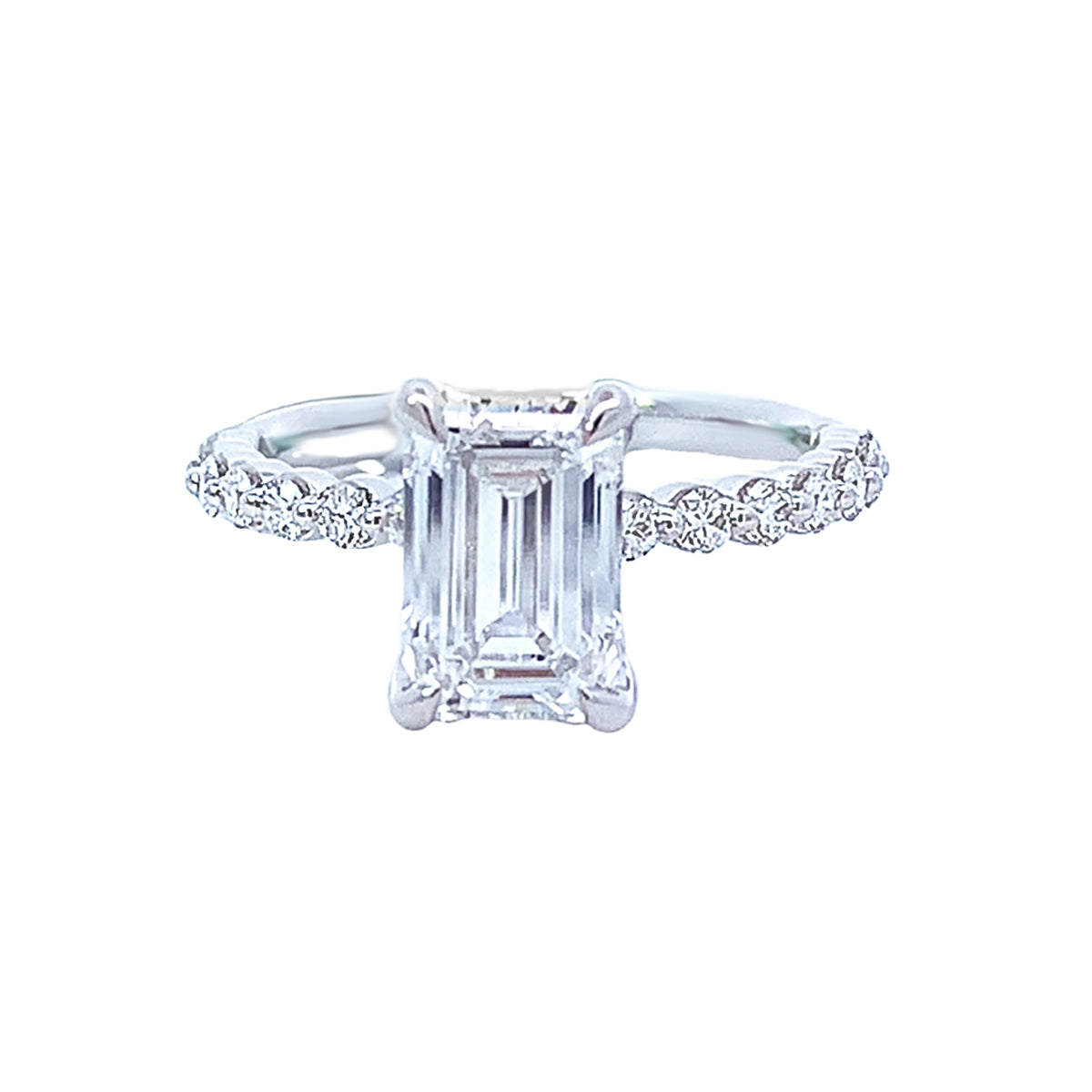 14k white gold Lab-Grown diamond engagement ring with 2.18ct emerald-cut center with 0.39ct shank