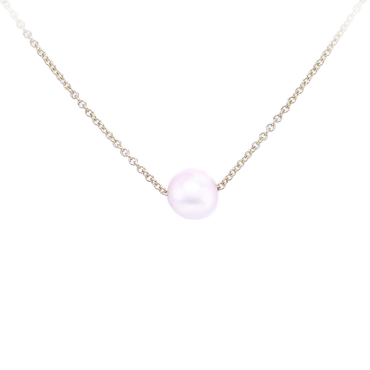 14kt yellow gold 16-18" 8.5mm solitaire cultured Akoya pearl sliding on cable chain