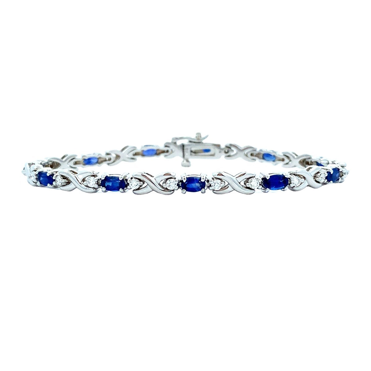 14k white gold 7" 2.75cts oval sapphire & 0.66cts diamond "X" style bracelet