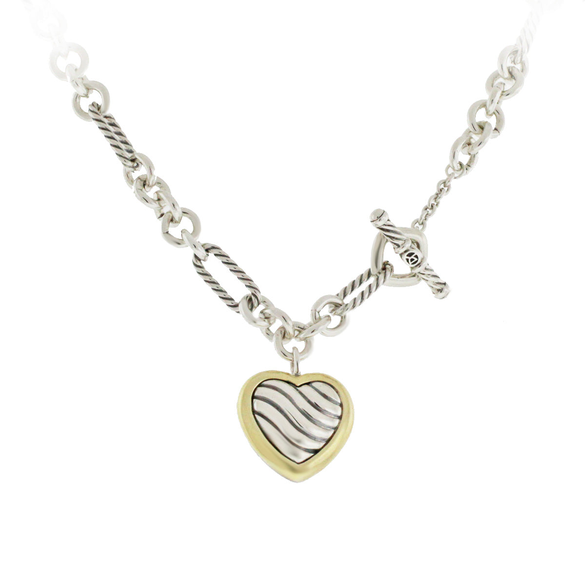 Sterling silver & 18ky gold 16" David Yurman Vintage Figaro link toggle necklace with heart pendant