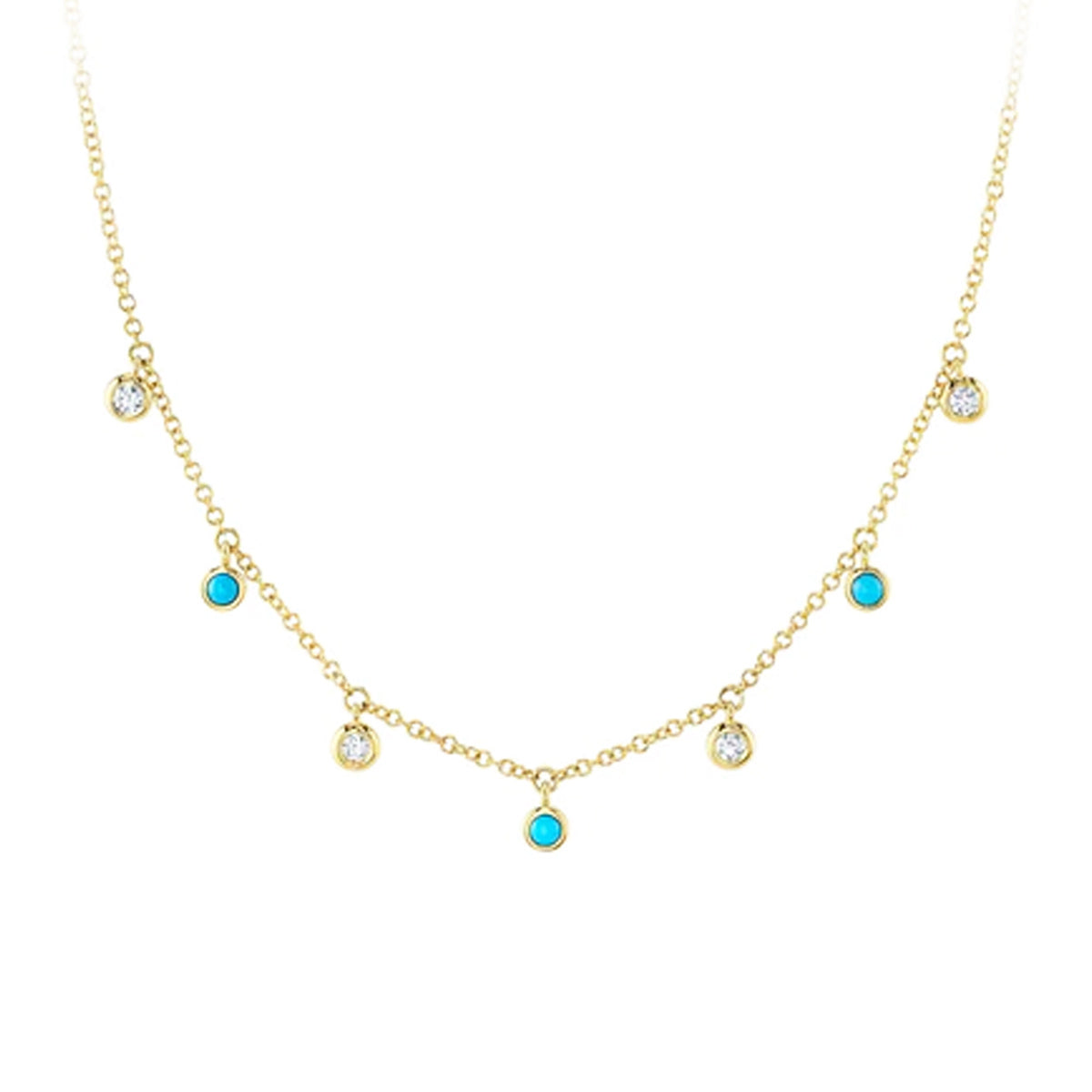 14k yellow gold 18" necklace with composite turquoise and .11ct diamond drops(7) by Shy Creation