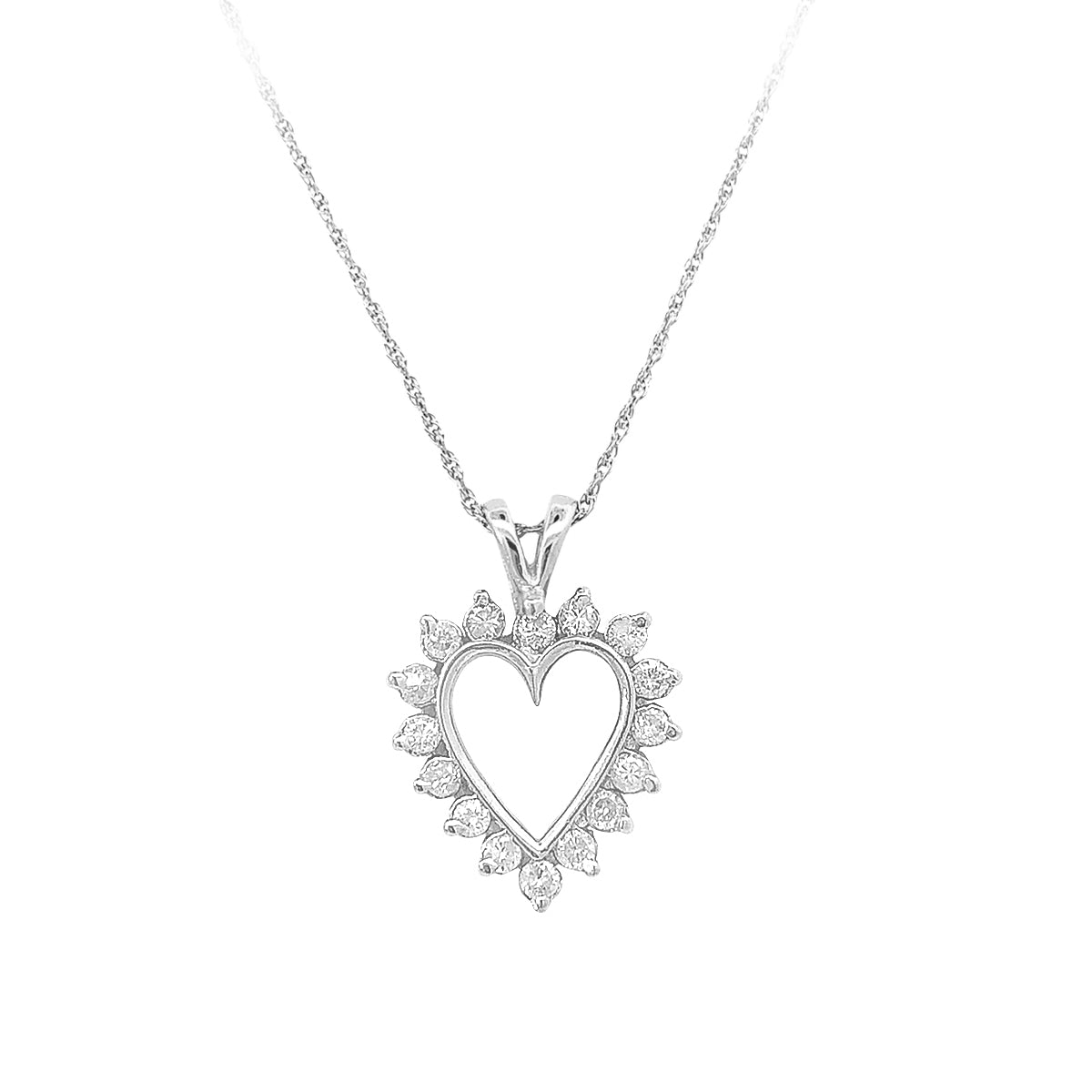 14kt white gold 17" Vintage 0.48ct diamond heart pendant