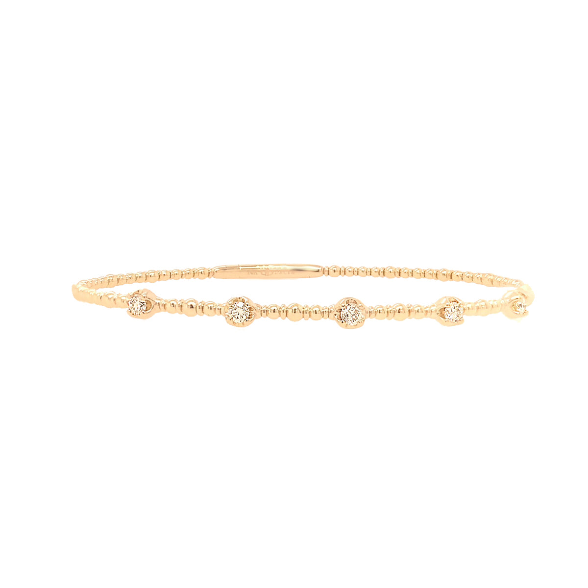 14ky gold beaded flex bangle with 5 studded diamonds (1/3ct) & titanium core in size 7.25"