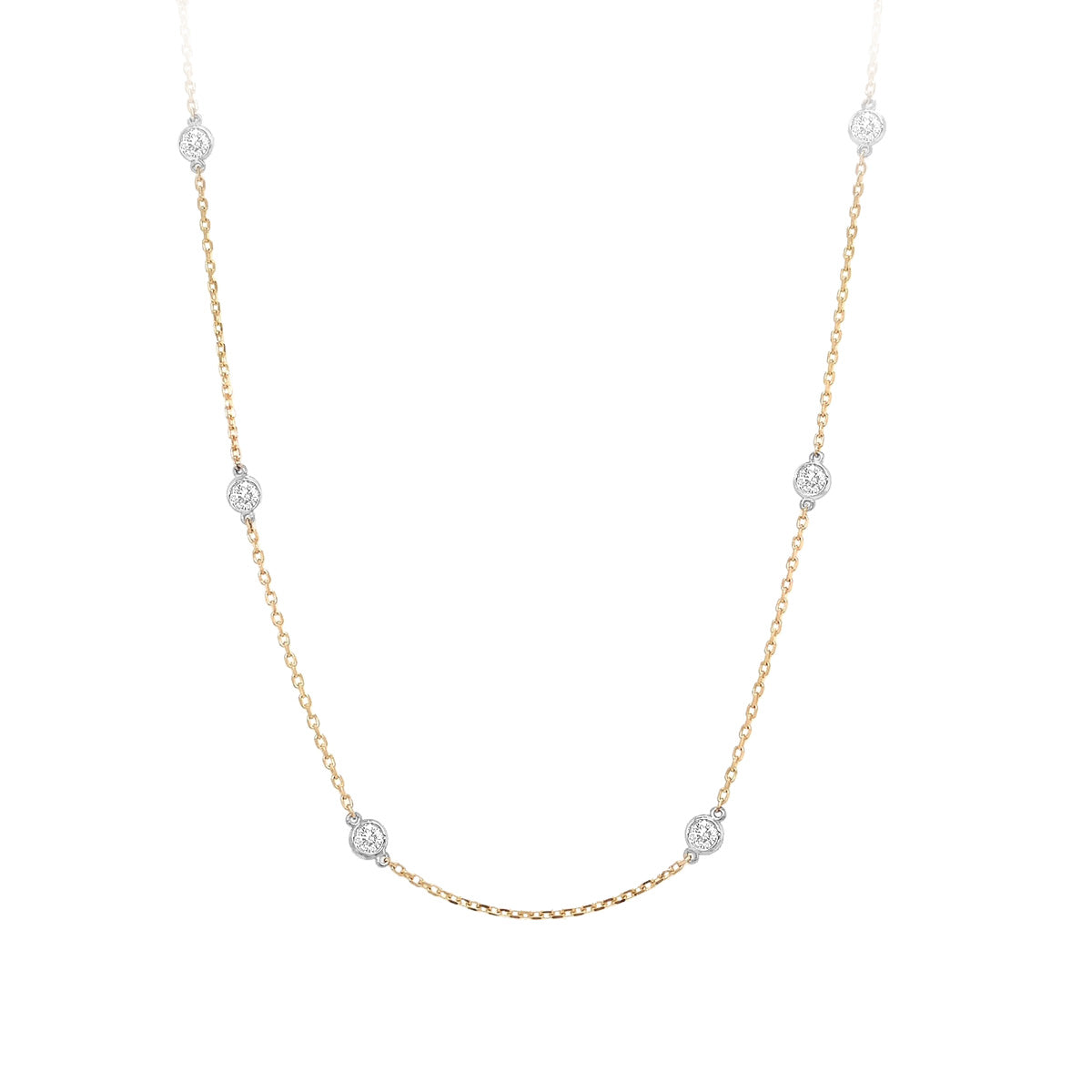 14k yellow gold 18" 1ct Natural diamond(10)-by-the-Yard station necklace with white gold bezels
