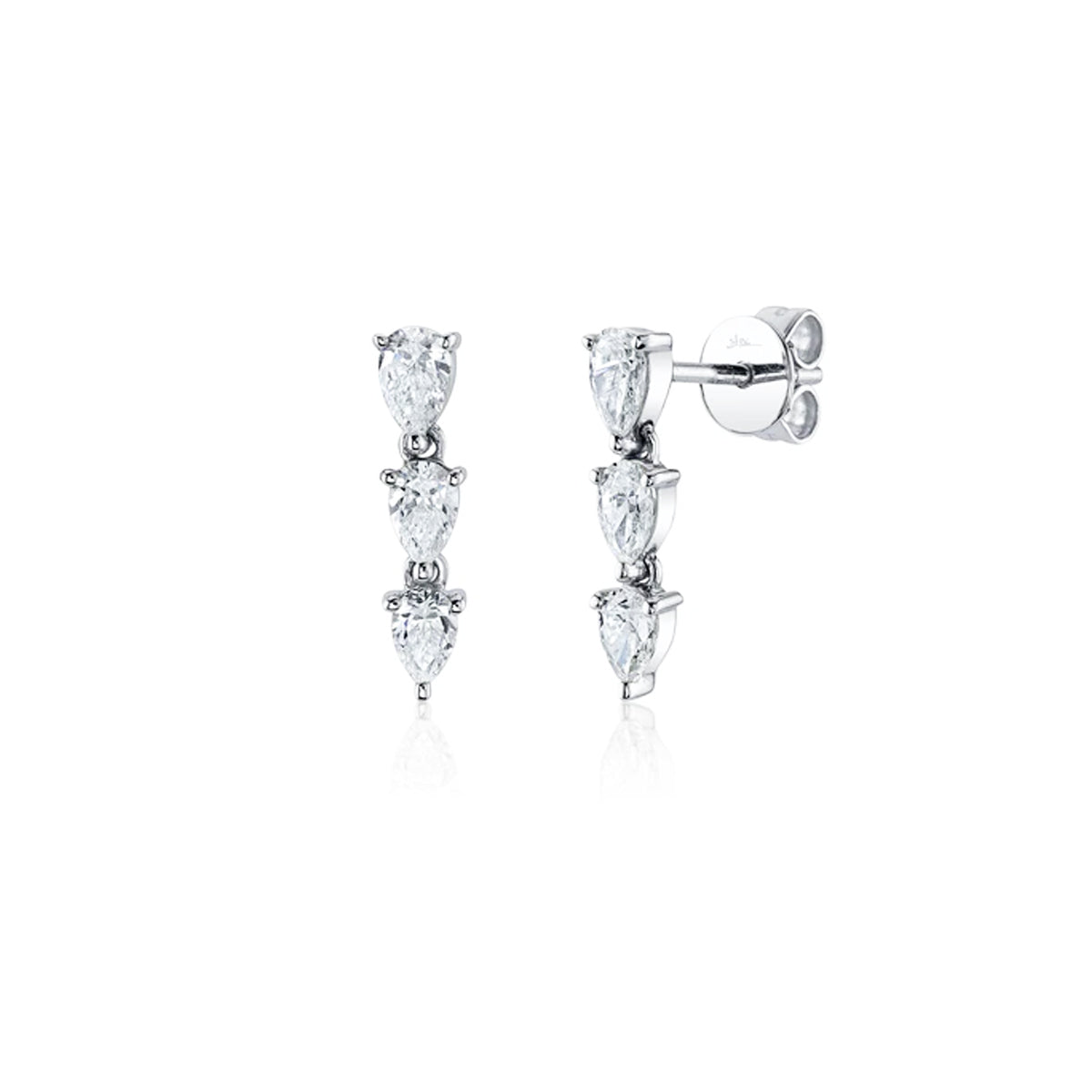14kt white gold 0.83ct 3-pear diamond bar earrings by Shy Creation