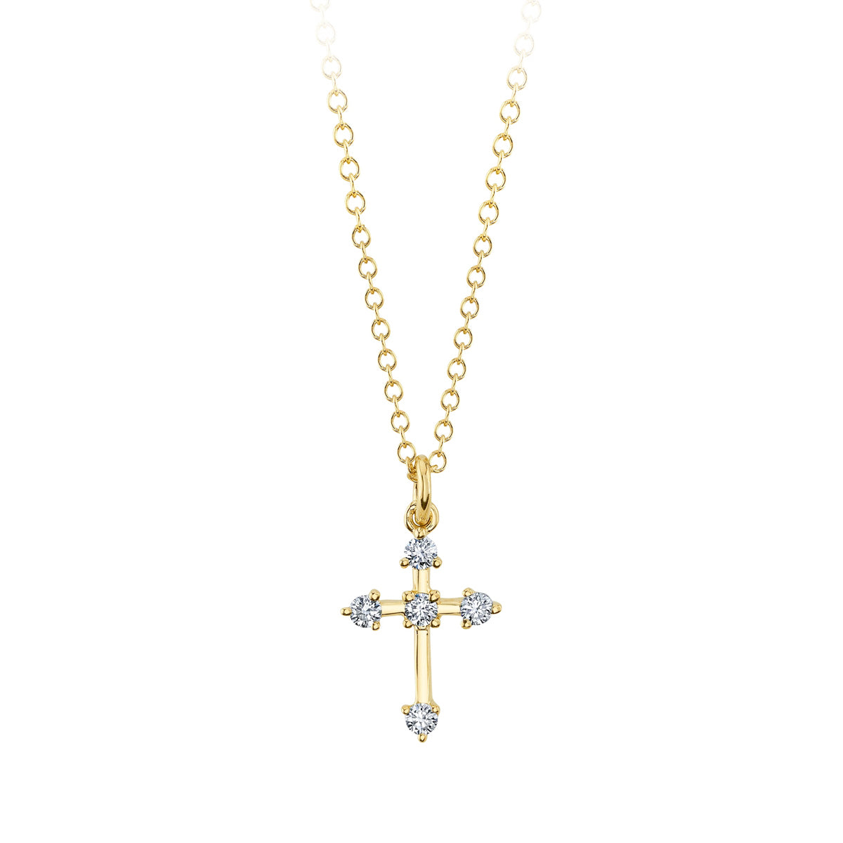 14kt yellow gold 18" 0.13ct 5-diamond cross pendant by Shy Creation