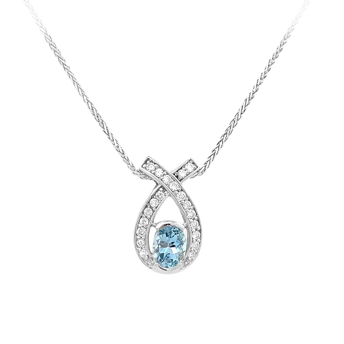14k white gold 20" Vintage aquamarine pendant with crossover 0.22ct diamond frame