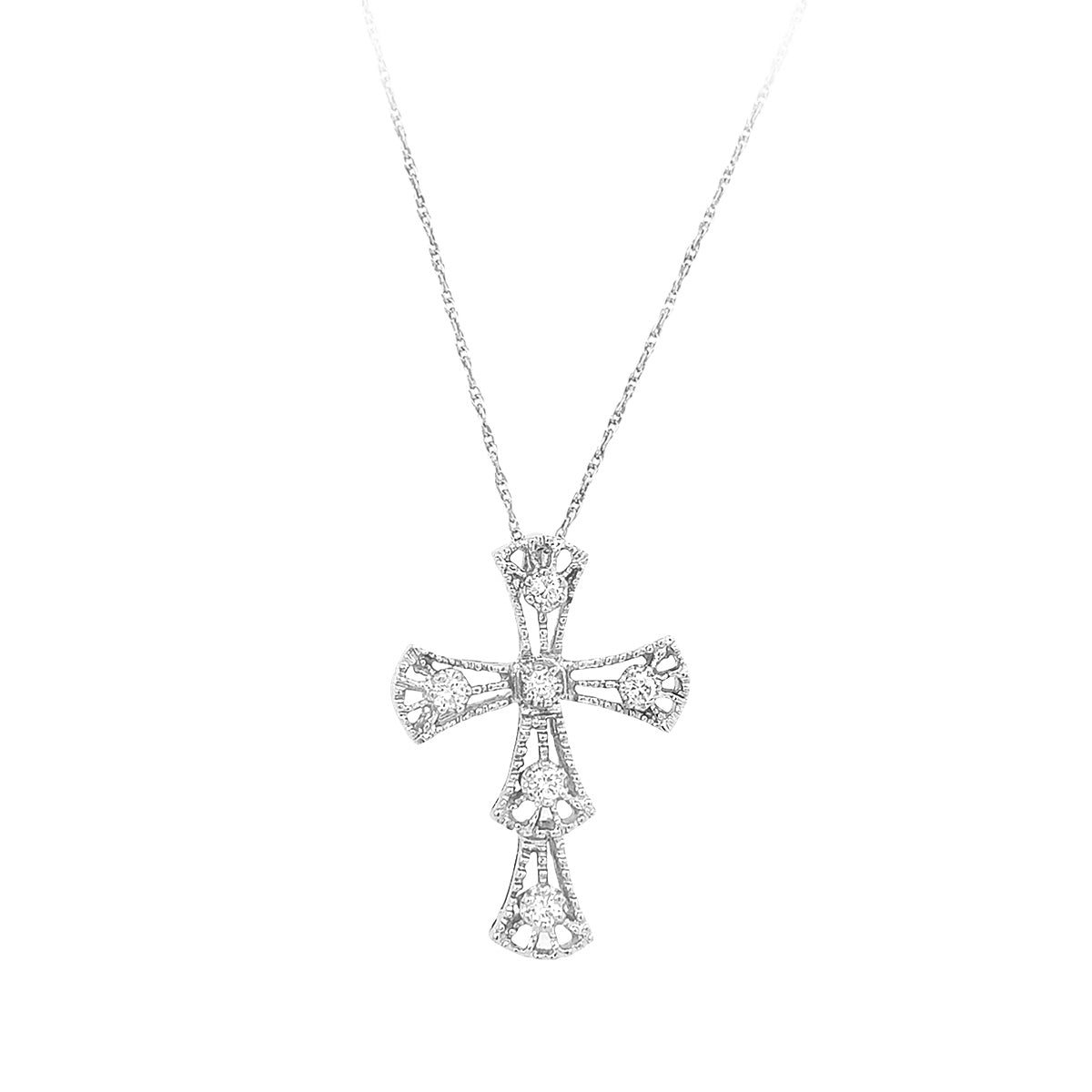 14kt white gold 18" Vintage 1" filigree 0.15ct diamond cross pendant