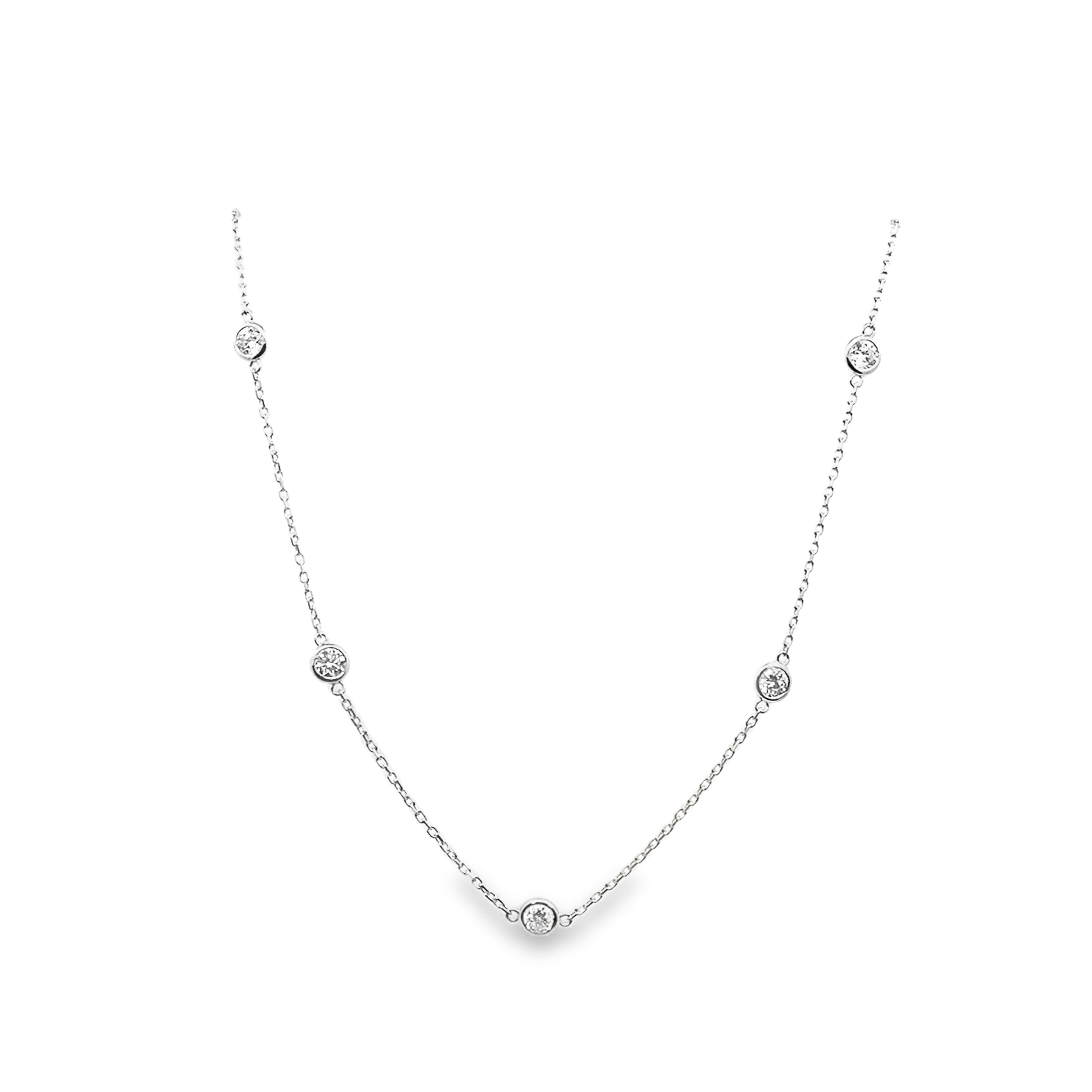 14K White Gold 18" 1.10Ct Diamond By The Yard Necklace (10 Stations)