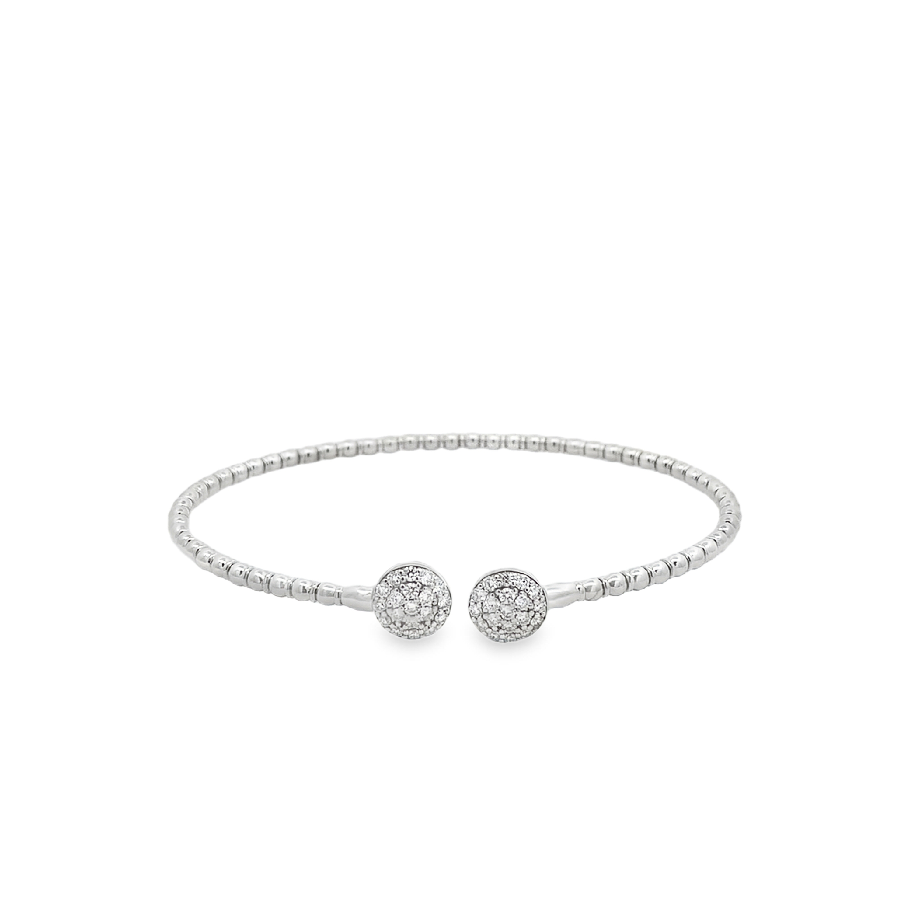 14kt white gold 1/2ct diamond narrow ribbed flexible cuff bracelet with round pave ends & titanium core