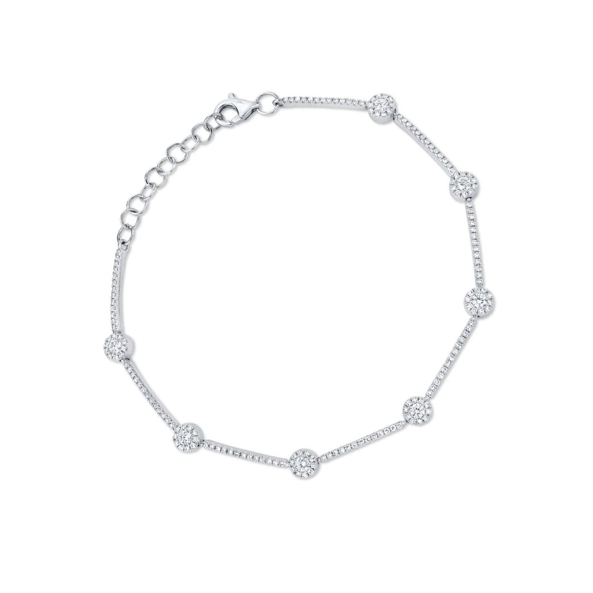 14kt white gold 7" 0.88ct bracelet with diamond bars & halo stations by Shy Creation