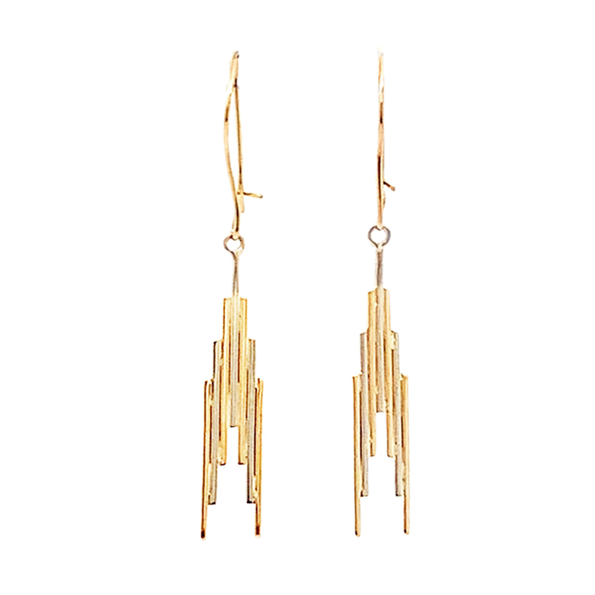 14kt yellow gold narrow Vintage "Architectural" wire drop earrings