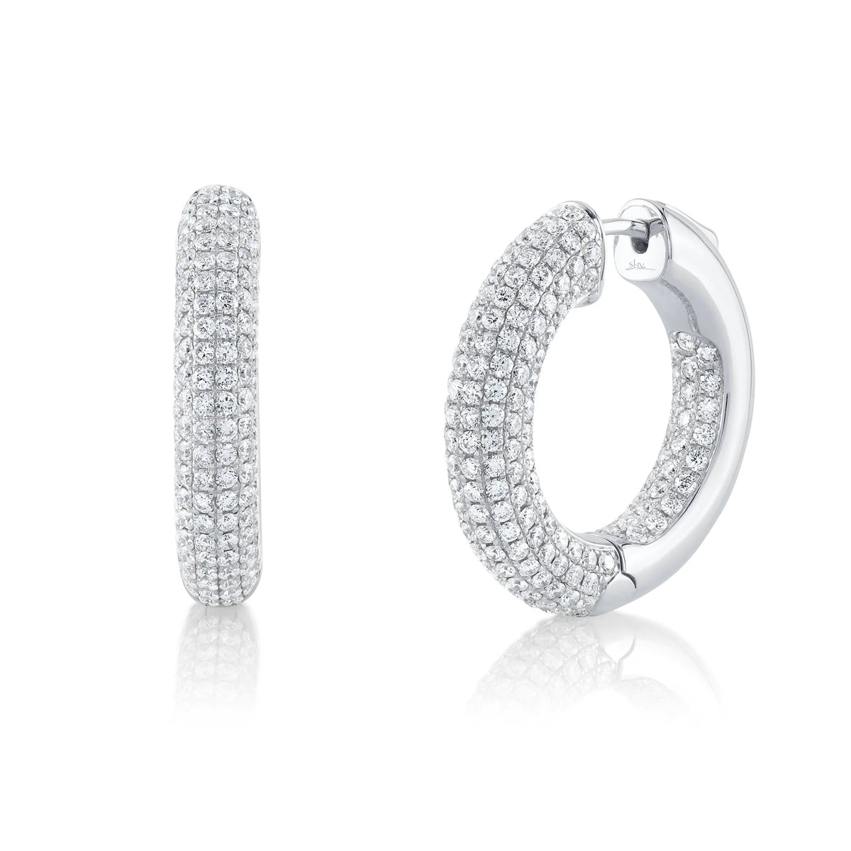 Fabulous 14kt white gold 1" 3.94ct pave diamond inside-out hoop earrings by Shy Creation