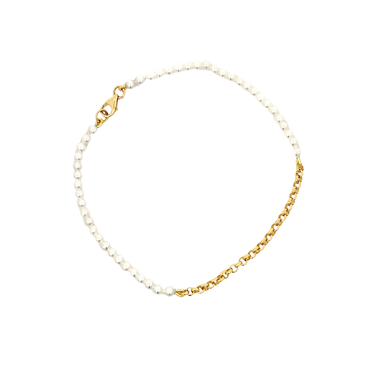 14kt yellow gold 3mm Freshwater pearl fashion bracelet with Rolo chain center