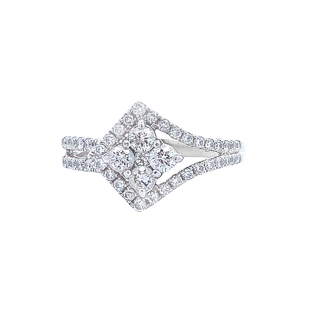 14k white gold Vintage 0.73ct pointed diamond cluster fashion ring, size 7.5