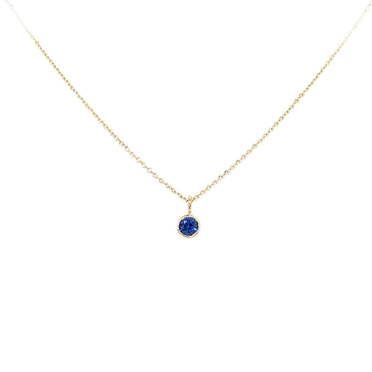 14kt yellow gold 16" tiny, delicate bezel-set sapphire solitaire necklace