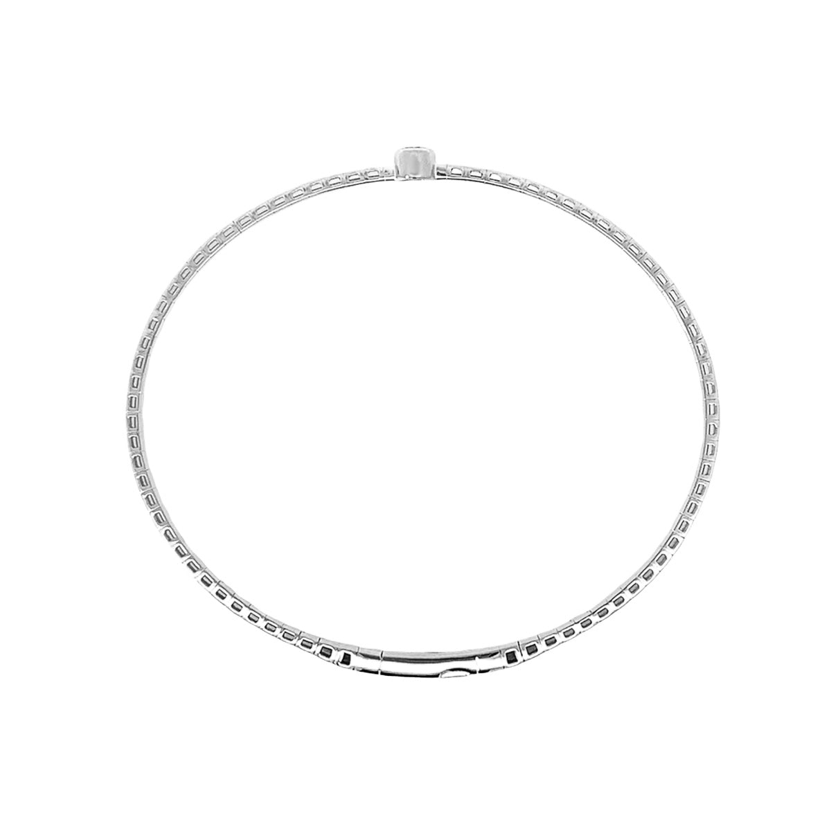 14kt white gold 1.6mm narrow, shiny square flex bangle with single 0.16ct diamond
