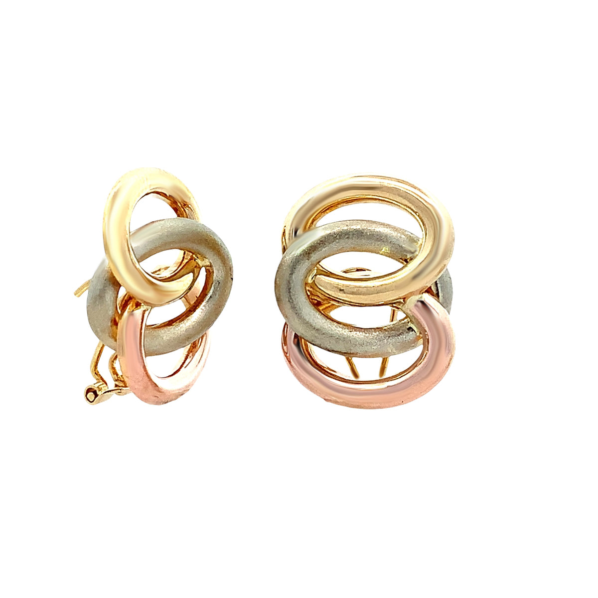 18k tricolor Vintage 3-ovals button earrings
