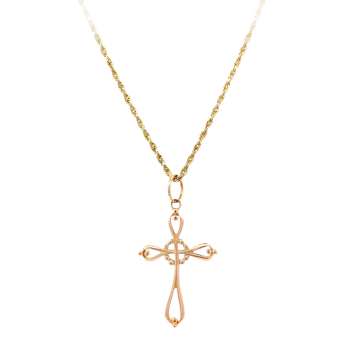 14k rose gold 18" Vintage loop & beaded cross pendant