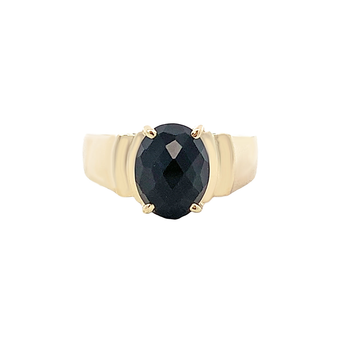 14kt yellow gold small Vintage faceted onyx ring, size 7