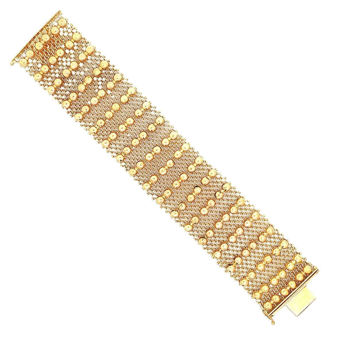 18k yellow gold 1.25" wide Vintage flexible mesh bracelet with beaded trim