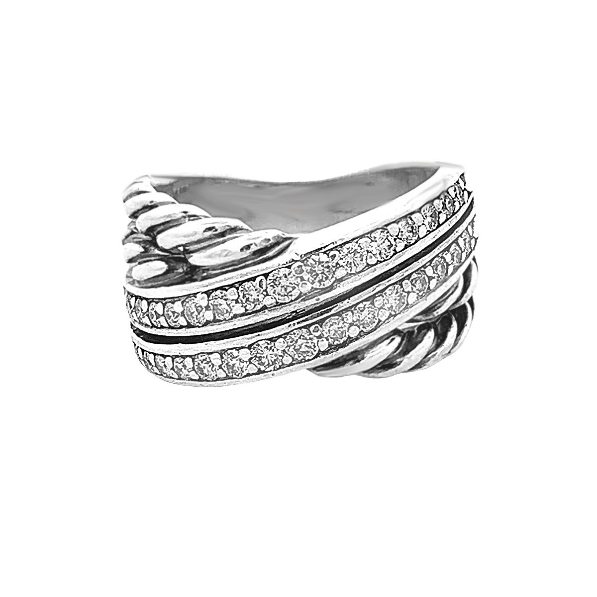 Sterling silver Vintage David Yurman 0.63ct diamond "Crossover" ring, size 5.5
