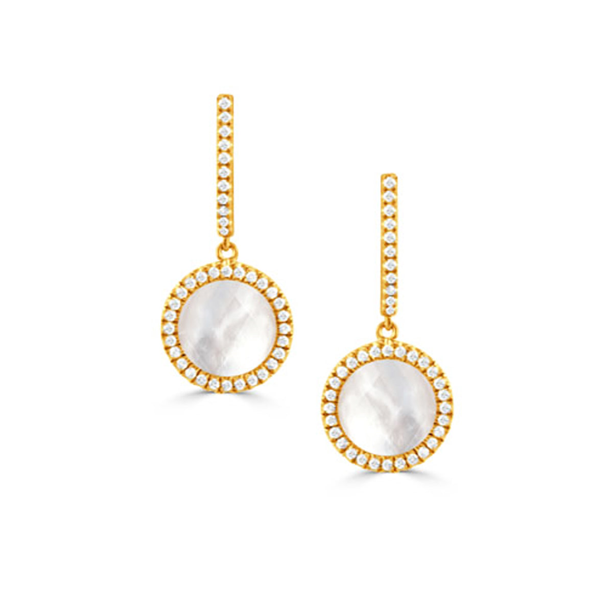 18k yellow gold doves round mother-of-pearl & quartz doublet halo drop earrings by Doves with 0.28ct diamonds