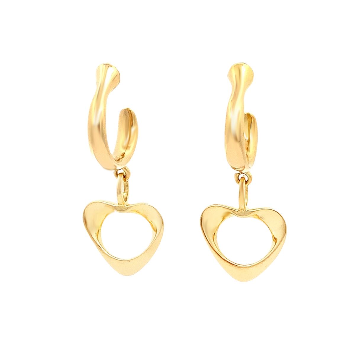 18kt yellow gold Vintage George Jensen (Denmark) hoop earrings with freeform heart drops