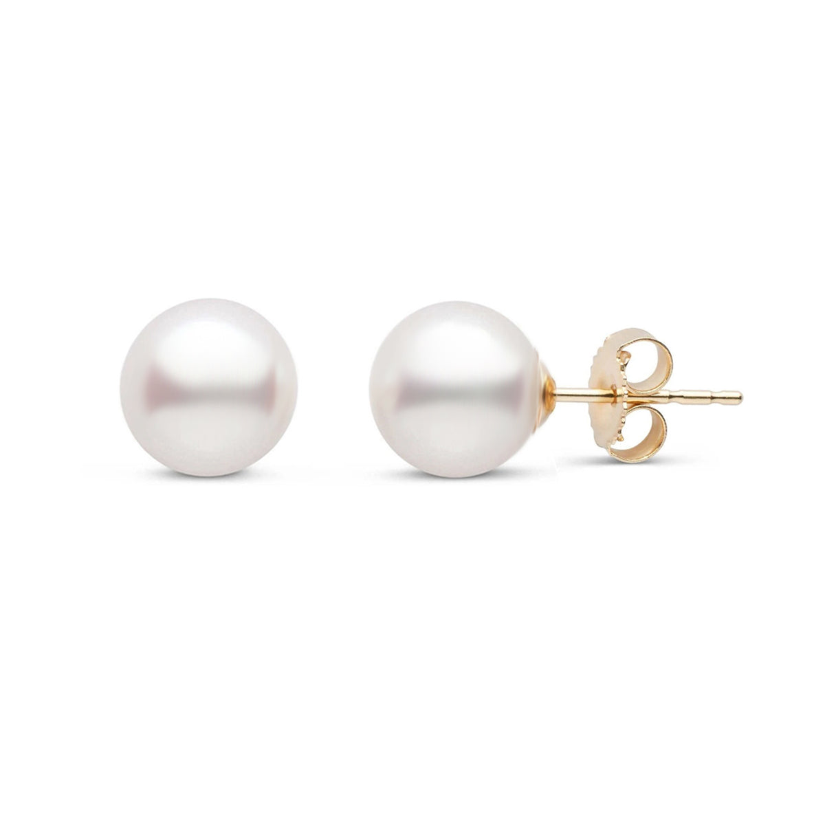 14k yellow gold 8mm Akoya cultured pearl stud earrings