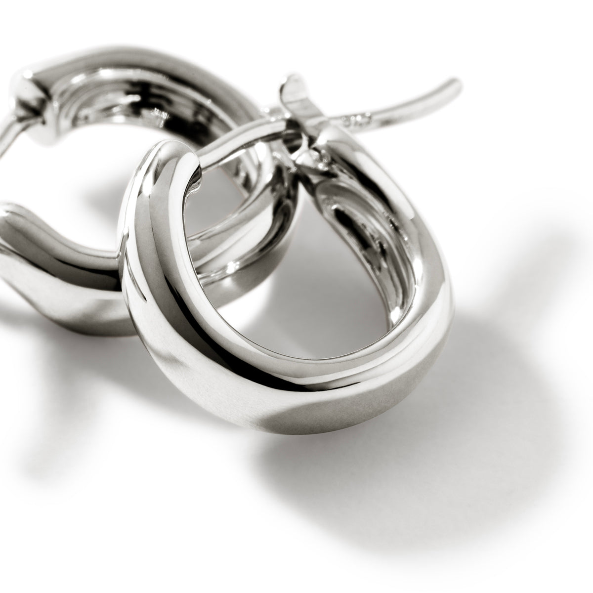 Sterling silver small John Hardy unisex shiny "Surf" hoop earrings