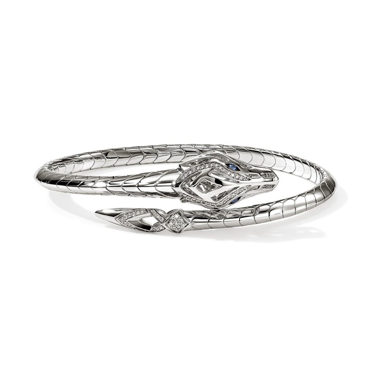 Sterling silver John Hardy "Naga" Dragon Tail bypass bracelet with 0.22ct pave diamonds & blue sapphire eyes