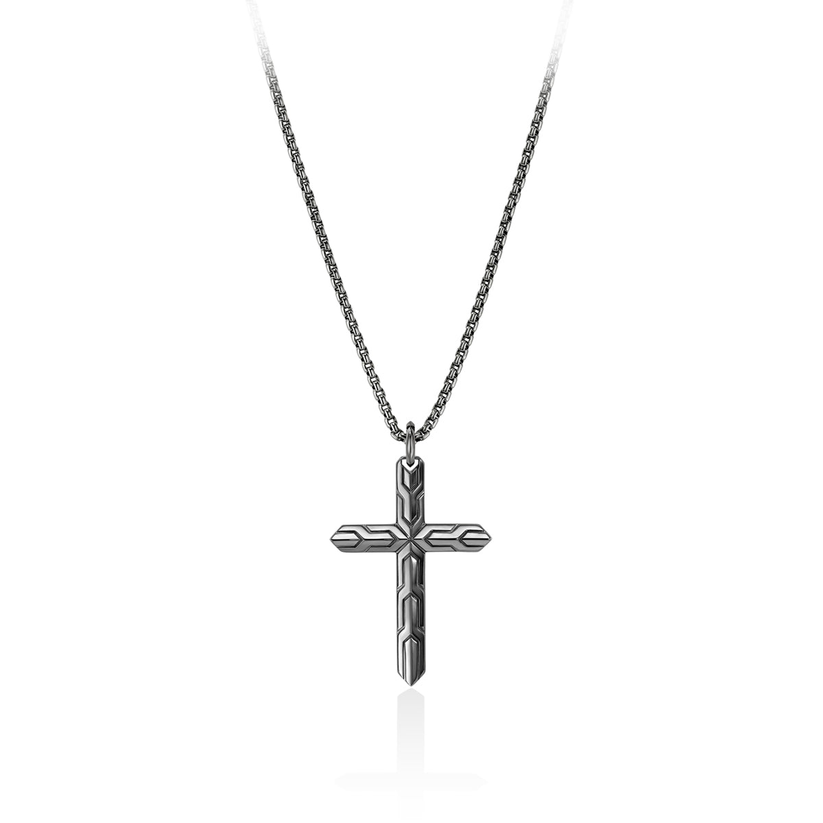 Sterling silver 22" John Hardy mens "Icon" beveled chain cross pendant