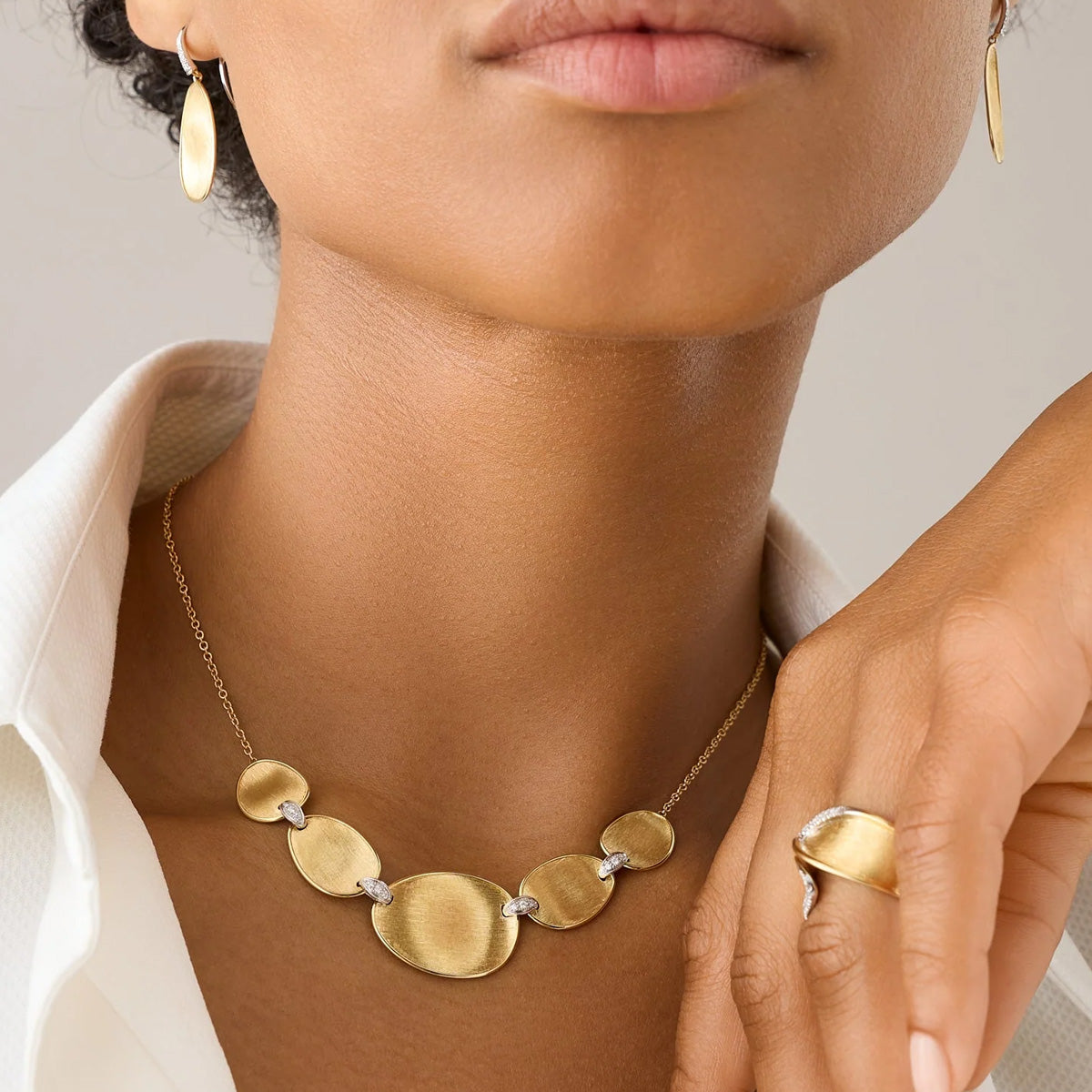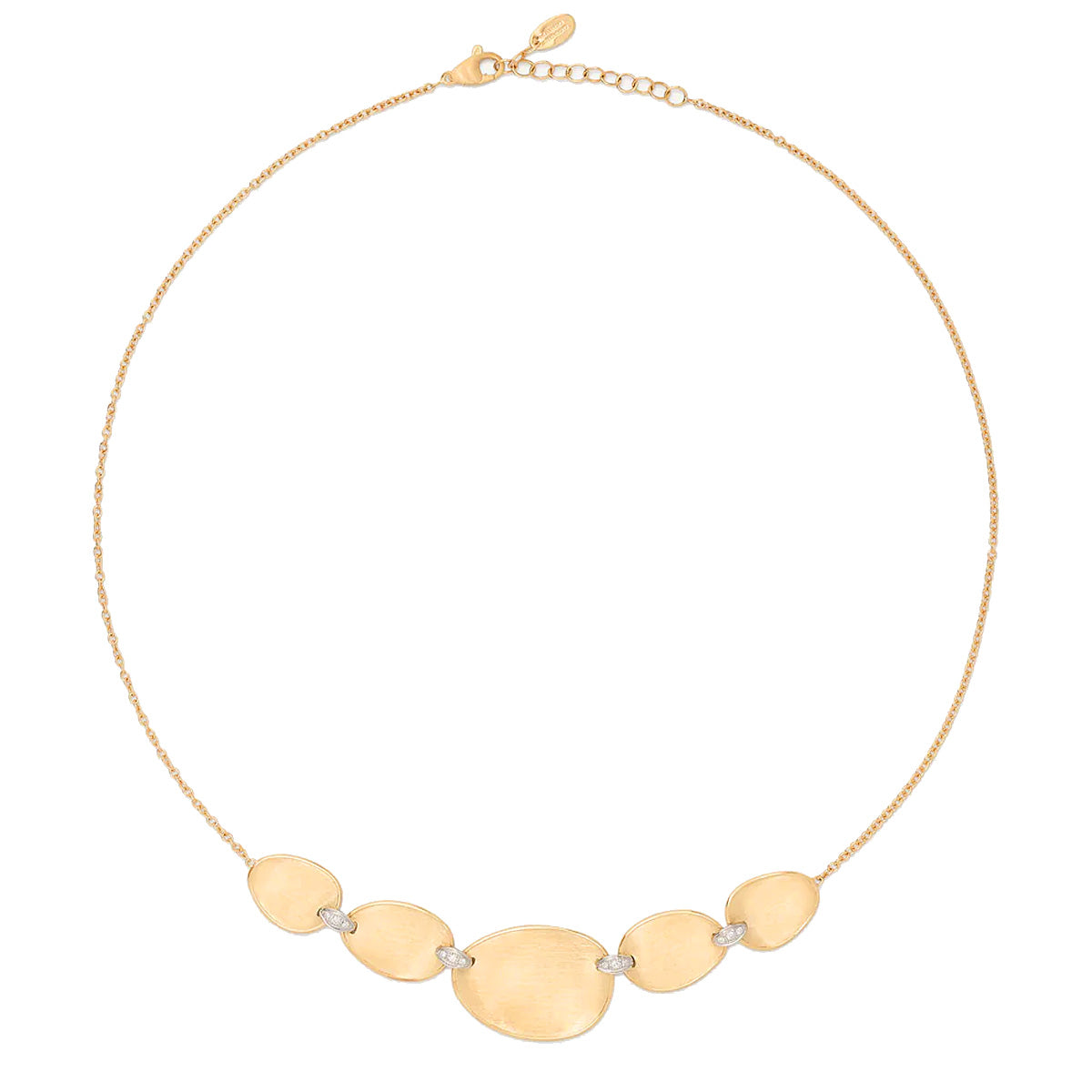18k yellow gold 16.5" Marco Bicego "Lunaria" 5-disc graduated necklace with 0.07ct diamond spacer links