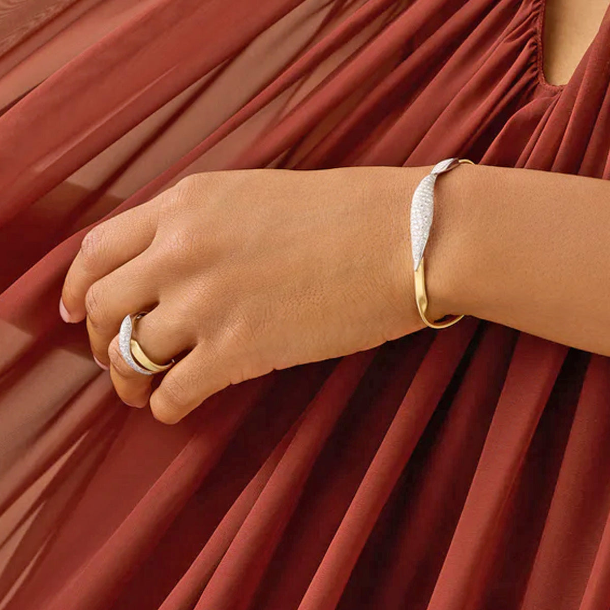 18k yellow gold Marco Bicego "Marrakech" flex bracelet with 1.36ct twisted pave diamond center
