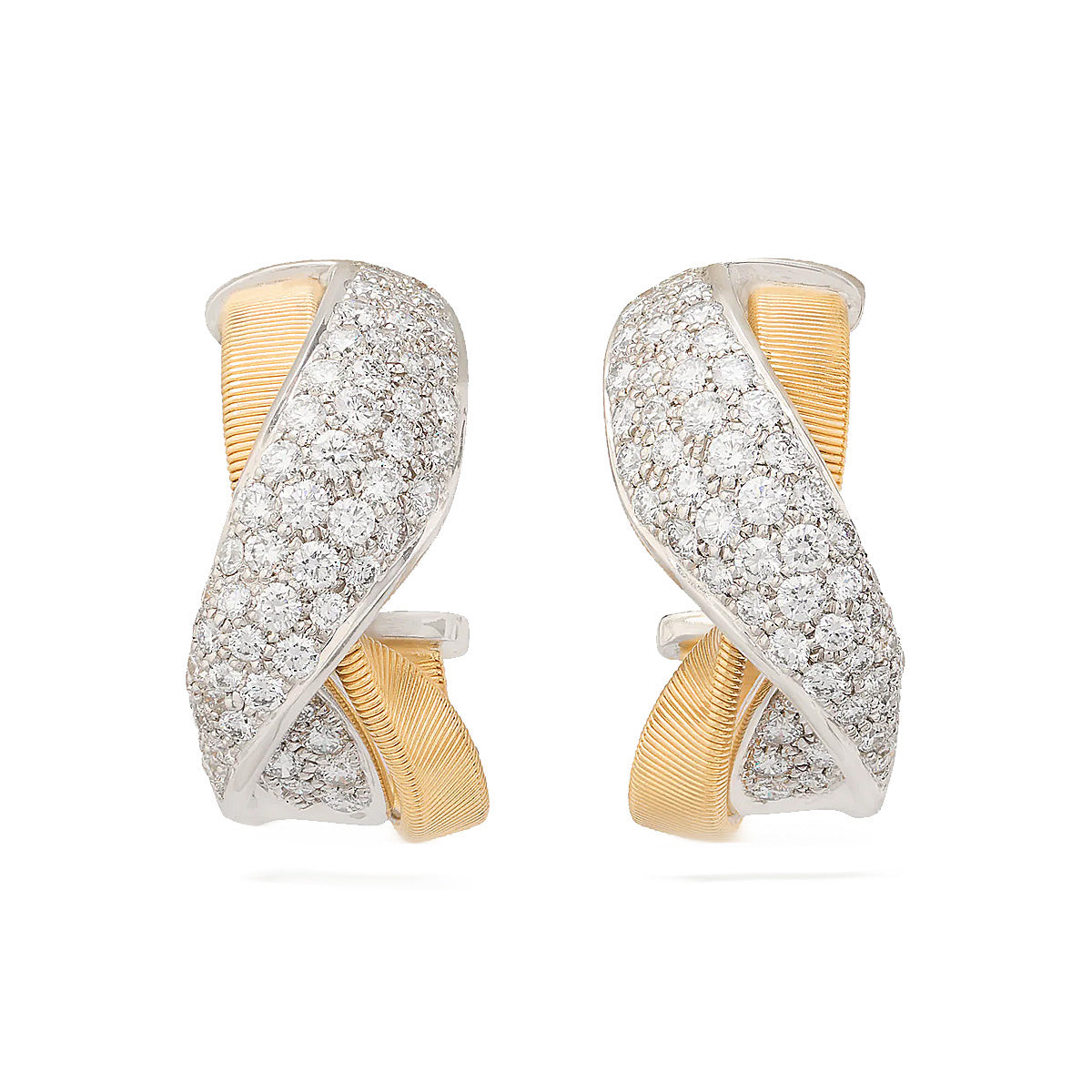 Stunning 18k yellow gold Marco Bicego "Marrakech" 2-row hoops with 1.57ct twisted pave diamond center
