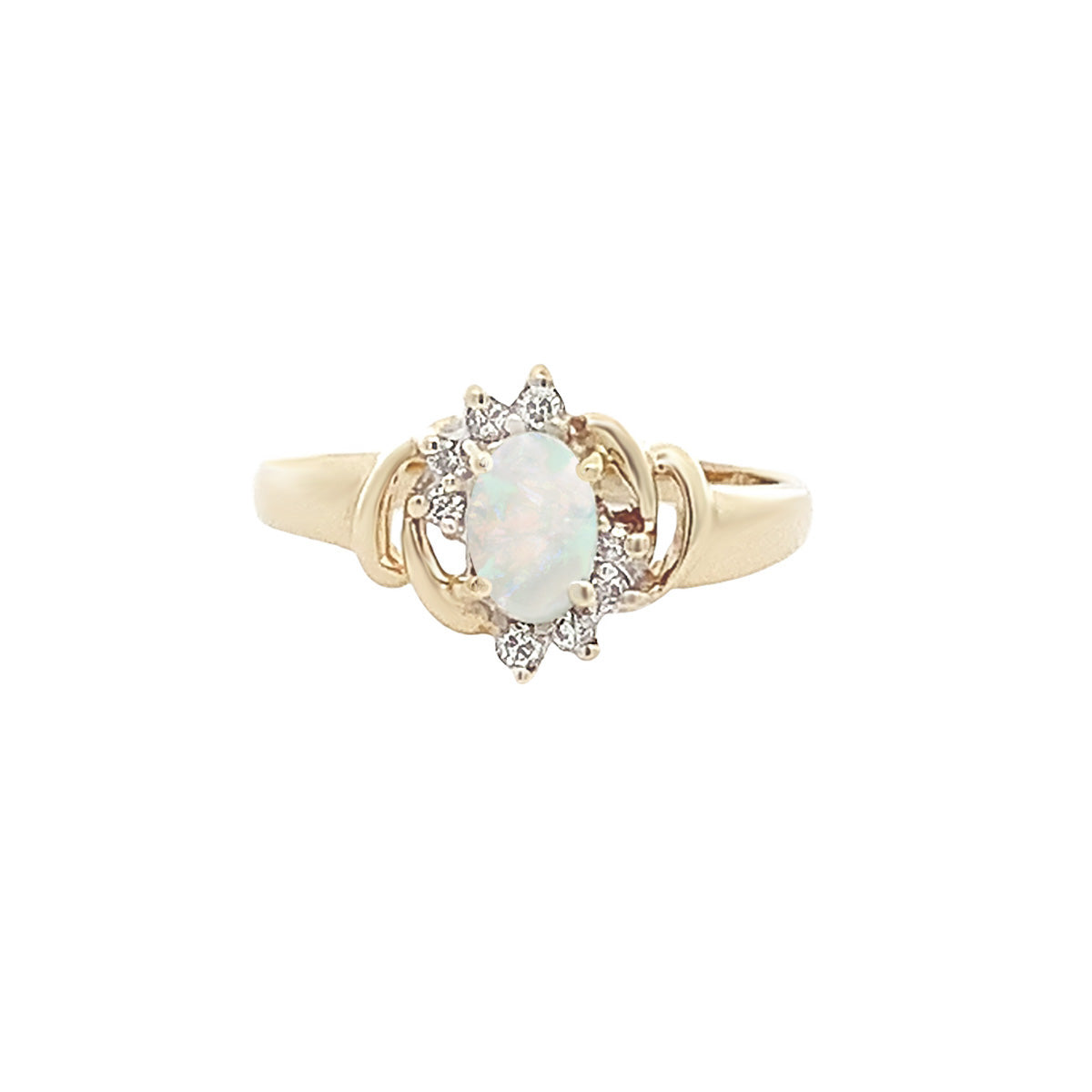 14kt yellow gold small Vintage oval opal ring with 0.12ct diamonds, size 6