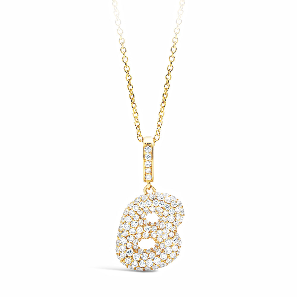 18k yellow gold 18" puffy 0.80ct pave diamond "bubble" letter "B" initial pendant