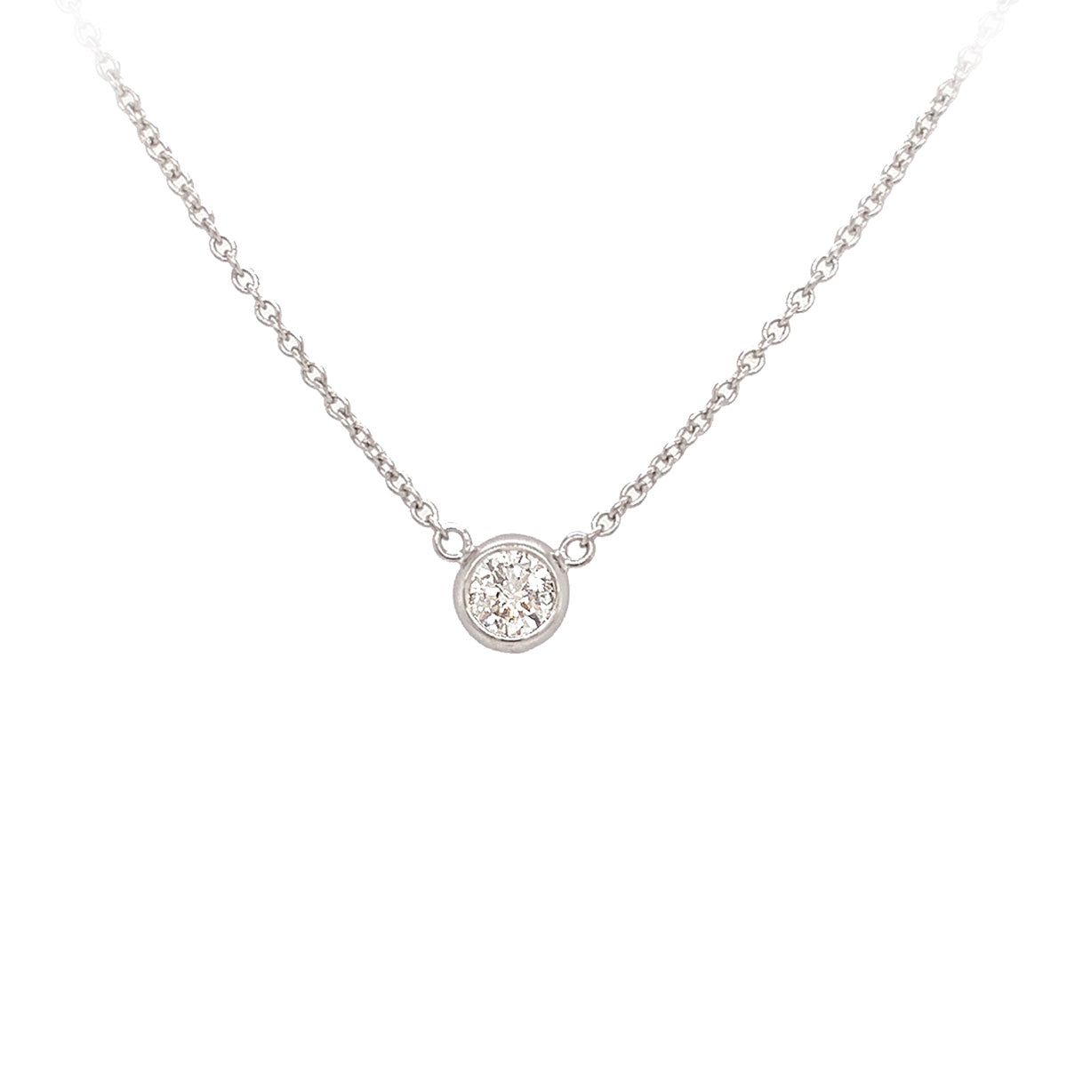 14k white gold 18" Diamond-by-Yard 0.43ct solitaire necklace in polished bezel, F/SI1