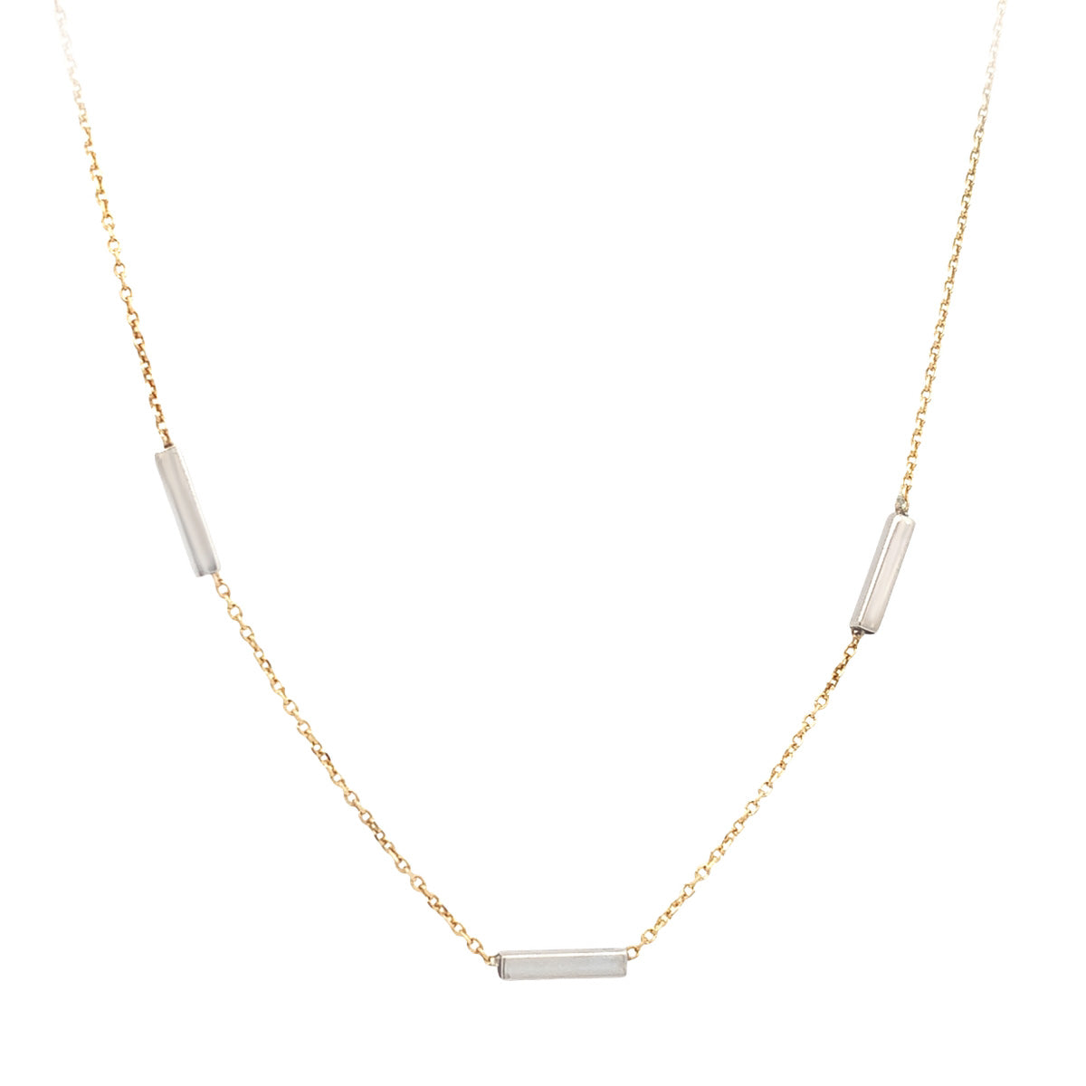 14kt yellow gold 16" Vintage cable chain necklace with 3 white gold bar stations